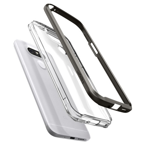 Form meets function with Spigen's redesigned LG G5 Neo Hybrid Crystal case in gunmetal. The reinforced polycarbonate frame ensures a strong defense while the interior TPU absorbs and distributes impact shock. Its smart design complements every aspect of your G5 for an engineered finish.