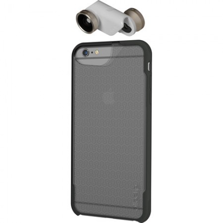 Protect your iPhone 6 Plus/6s Plus while taking your smartphone photography to the next level with the olloclip 4-in-1 Photo Lens + OLLOCASE. This bundle includes an olloclip 4-in-1 lens in silver with a white clip as well as a protective OLLOCASE in clear and gray. The OLLOCASE gives you protection for your device without needing to remove your case to attach your olloclip lens. Its rubberized bumpers give you extra grip and the back is scratch-resistant. A raised bezel lifts the screen away from flat surfaces when placed face-down.